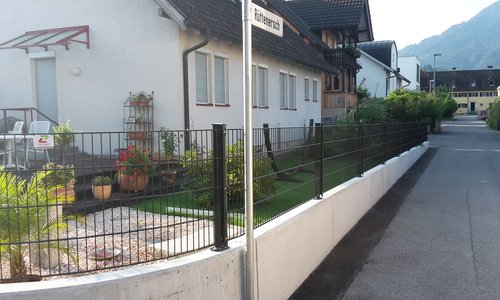 Doppelstabmatten schwer feuerverzinkt und anthrazit beschichtet mit Pfosten Vario mit Fussplatte |