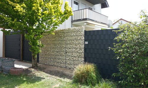Gabionen mit Doppelstabmattenzaun inklusive Sichtschutz