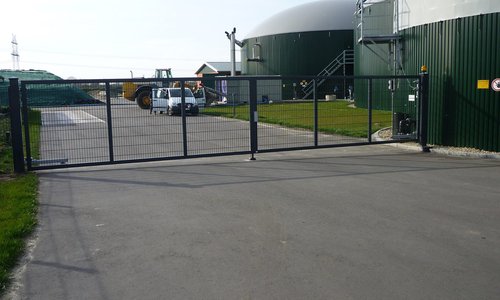 Zweiflügliges automatisches Drehflügeltor. Mit Fernbedienung, Code oder mit jedem Telefon in jedem Land zu öffnen.