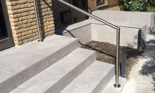 Edelstahl Handlauf geneigt mit Fussplatte |