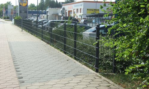 Doppelstabmatten leicht feuerverzinkt und anthrazit beschichtet mit Pfosten Vario einbetoniert |