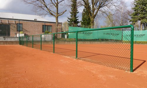 6 x Barriere-Anlage Rohrgeländer mit Diagonalgeflecht zur Trennung der Tennisspielplätze
