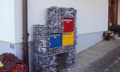 Projekt: | Steinkorb mit farbigen Briefkästen |