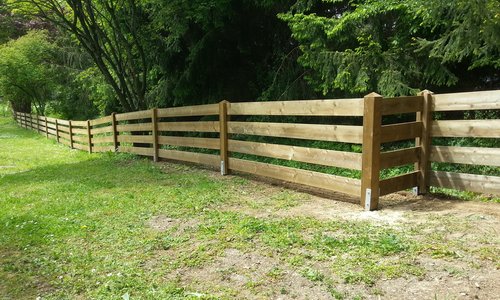 Fence type: | Bohlenzaun mit Tannenpfosten Vierkant grün und H-Anker |