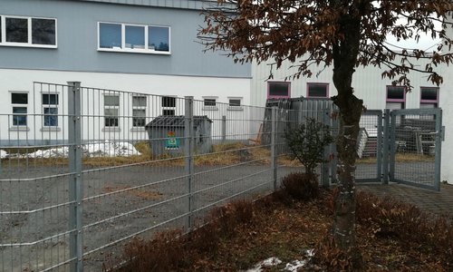 Doppelstabmatten schwer verzinkt mit Pfosten 40x60 verzinkt mit Abdeckleisten einbetoniert |