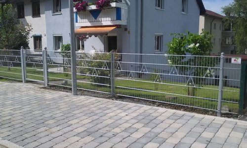Ziergitterzaun Lillehammer RAL Standardfarbe / Rohrpfosten vierkant RAL Standardfarbe einbetoniert |