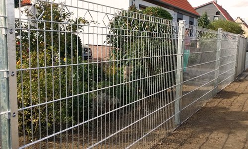 Fence type: | Deko-Doppelstabmatten Stuttgart verzinkt mit Pfosten 40x60 verzinkt mit Abdeckleisten einbetoniert |