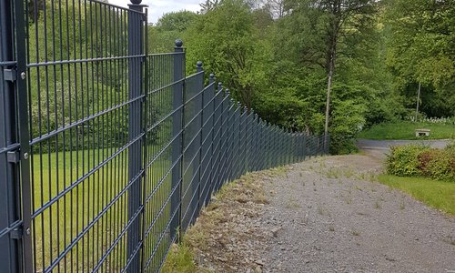 Doppelstabzaun mit Abtreppung im Kurvenbereich inkl. Kugelkappe aus Aluminium