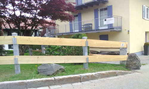 Bohlenzaun an verzinkte Stahlpfosten mit angeschraubten Laschen