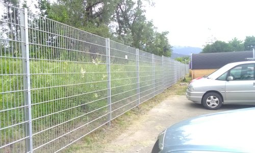 Doppelstabmatten schwer verzinkt mit Pfosten 40x60 verzinkt mit Abdeckleisten einbetoniert |
