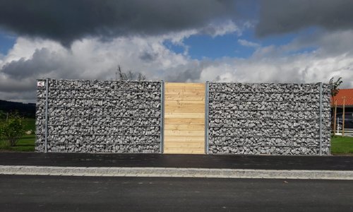 Gabionen-Sichtschutz mit Lärchenholz-Element