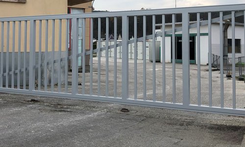Aluminiumtor Rahmen geschweißt in RAL 9006 Breite 5,5m auf Maß gefertigt. An bestehende Säulen.