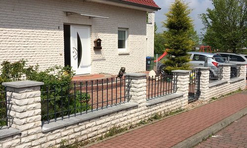 Dieser Klassikzaun wurde per Sonderanfertigung, zwischen die bestehenden Sockel montiert.