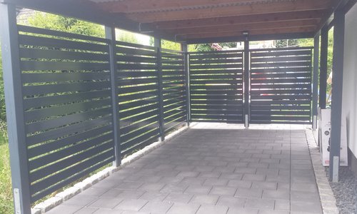 Maßgefertigte Sichtschutzfelder in den vorhandenen Carport eingebaut