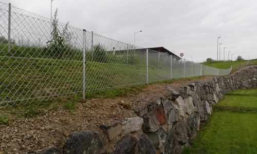 Diagonalgeflecht verzinkt mit Rohrpfosten verzinkt einbetoniert |