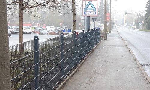 Doppelstabmatten leicht feuerverzinkt und anthrazit beschichtet mit Pfosten Vario einbetoniert |