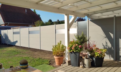 WPC-Sichtschutz in Verbindung mit Edelstahl-Lochblechen