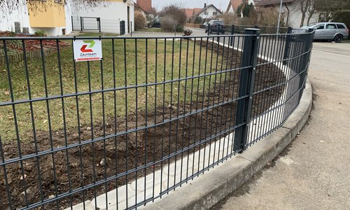Doppelstabmatten schwer feuerverzinkt und anthrazit beschichtet mit Pfosten 60 x 40 mit Abdeckleisten in Aussparung |