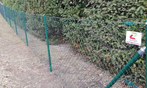 Diagonalgeflecht grün mit Rohrpfosten stabil grün einbetoniert |