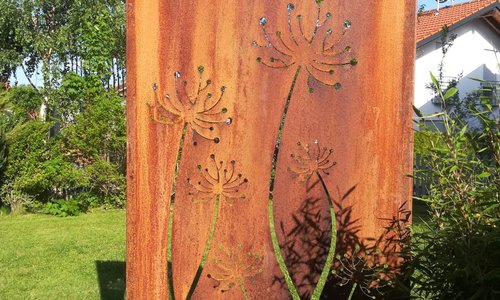 Cortainstahlsichtschutz mit Lasergravur verschönert
