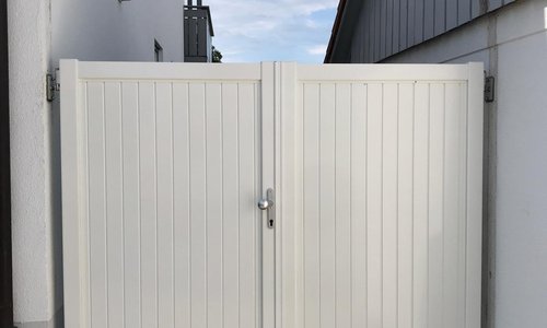 Torflügel mittels Mauermontageplatte an Haus- bzw. Garagenwand montiert