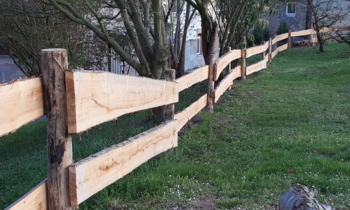 Ranchzaun (ungesäumte Bretter) mit Robinienpfosten |