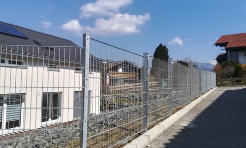 Doppelstabmatten schwer verzinkt mit Pfosten 40x60 verzinkt mit Abdeckleisten einbetoniert |