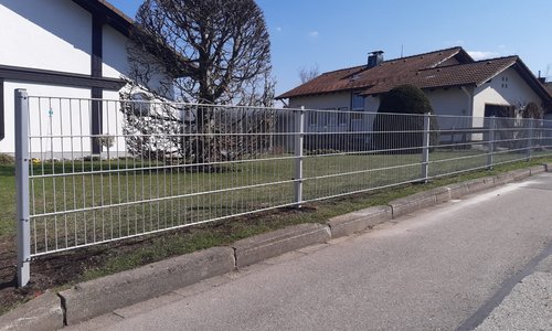 Doppelstabmatten schwer verzinkt mit Pfosten 40x60 verzinkt mit Abdeckleisten einbetoniert |