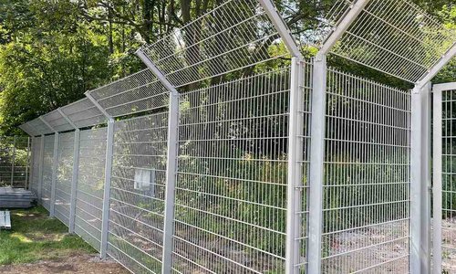 Doppelstabmatten schwer verzinkt mit Pfosten 40x60 verzinkt mit Abdeckleisten einbetoniert |