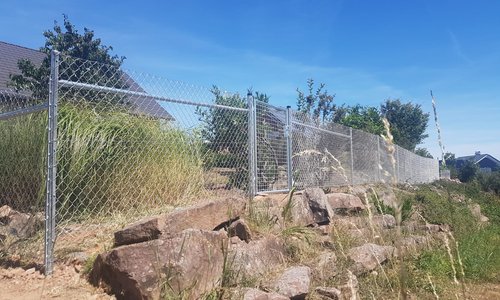 Diagonalgeflecht verzinkt mit Rohrpfosten verzinkt einbetoniert |