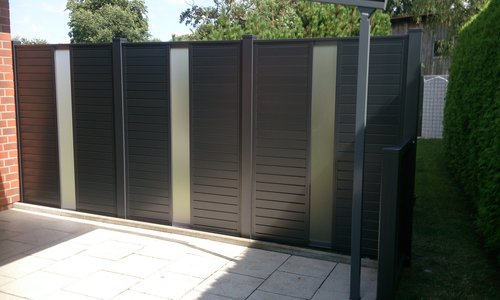 Aluminium-Sichtschutzzaun mit transparenter Acrylglas Füllung
