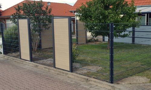 Kombination aus WPC-Sichtschutz und Doppelstabmattenzaun