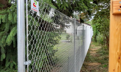 Diagonalgeflecht verzinkt mit Rohrpfosten verzinkt einbetoniert |