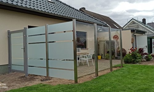 Fence type: | Glas Sichtschutz mit vierkant Edelstahlpfosten einbetoniert |