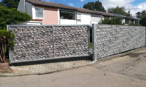 Flechtsichtschutzzaun ( Doppelstabmattenzaun mit eingeflochtenen Sichtschutzstreifen in Steinoptik )