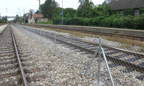 Diagonalgeflecht verzinkt mit Rohrpfosten verzinkt einbetoniert |