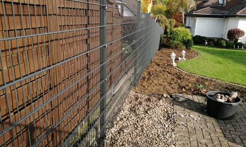 Doppelstabmatten schwer feuerverzinkt und anthrazit beschichtet mit Pfosten Vario einbetoniert |