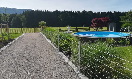 Drahtseilzaun mit Rohrpfosten verzinkt CH mit Fussplatte |