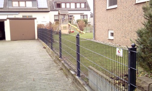 Doppelstabmatten leicht feuerverzinkt und anthrazit beschichtet mit Pfosten 60 x 40 mit Abdeckleistenmit Fussplatte |