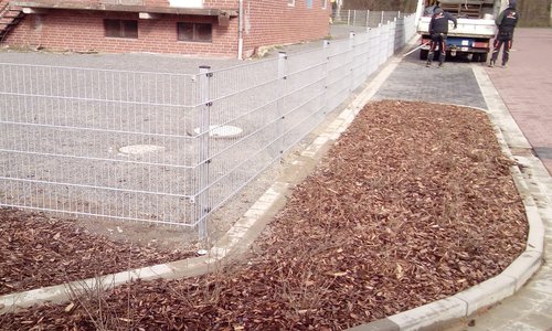 Doppelstabmatten leicht verzinkt mit Pfosten Vario verzinkt einbetoniert |