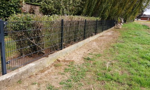 Doppelstabmatten leicht feuerverzinkt und anthrazit beschichtet mit Pfosten 60 x 40 mit Bügel einbetoniert |