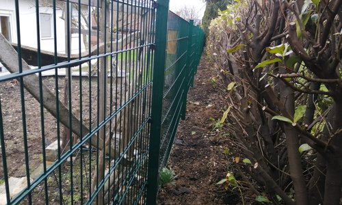 Doppelstabmatten leicht feuerverzinkt und grün beschichtet mit Pfosten Vario einbetoniert |