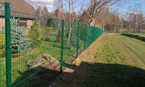 Doppelstabmatten leicht feuerverzinkt und grün beschichtet mit Pfosten Vario einbetoniert |