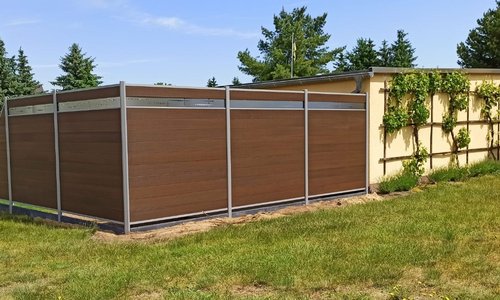 System WPC Sichtschutz, Platinum mit Alupfosten einbetoniert |