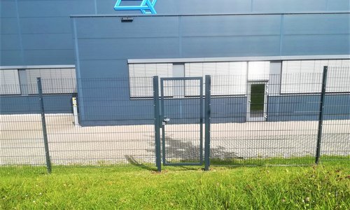 Doppelstabmatten schwer feuerverzinkt und anthrazit beschichtet mit Pfosten 60 x 40 mit Abdeckleisten einbetoniert |