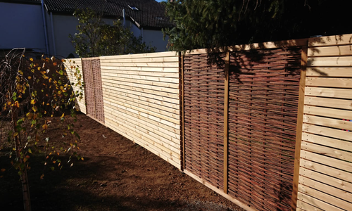 Holzsichtschutz Sibirische Lärche mit Auflockerungsfeldern Weidenzaun |