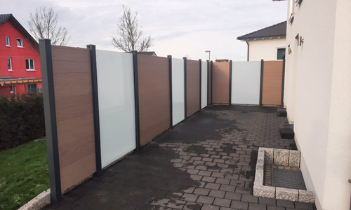 Alu Varioprofil Sichtschutz mit Glaselementen satiniert |