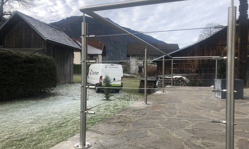 Drahtseilzaun mit Edelstahlpfosten mit Fussplatte |