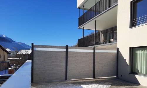 Alu Varioprofil glatt mit Aluminiumpfosten vierkant 85 x 85 mm in Ausparung |