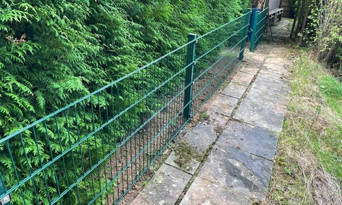 Doppelstabmatten leicht feuerverzinkt und grün beschichtet mit Pfosten Vario einbetoniert |